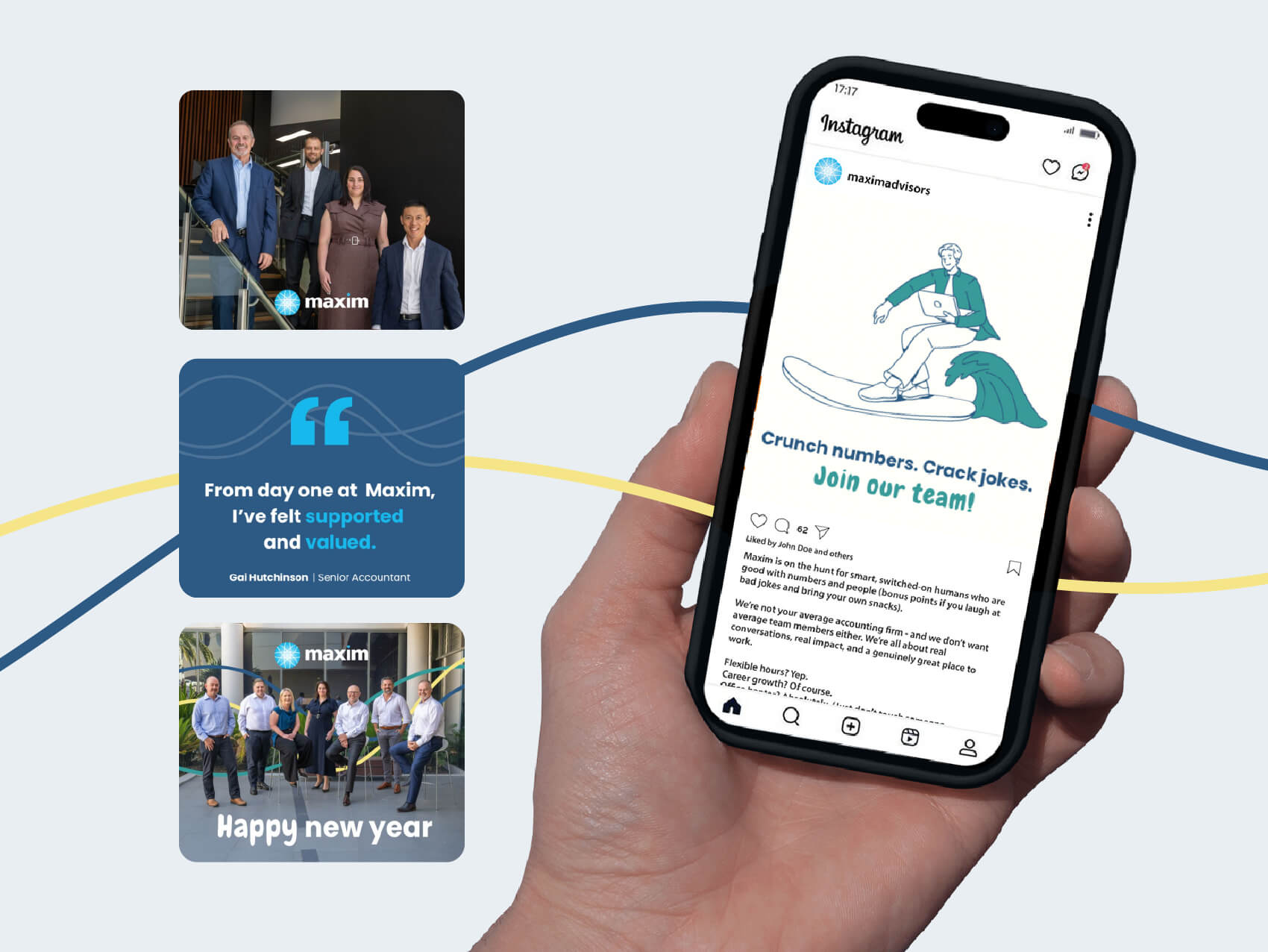While at The Marketing GP, Sam played a key role in delivering a strategic brand refresh for Maxim Advisors. The project retained the existing logo to preserve recognition, while evolving the wider brand system - including colour hierarchy, typography, tone of voice, visual language, patterns and character illustrations - to better reflect Maxim’s human, community-driven positioning.