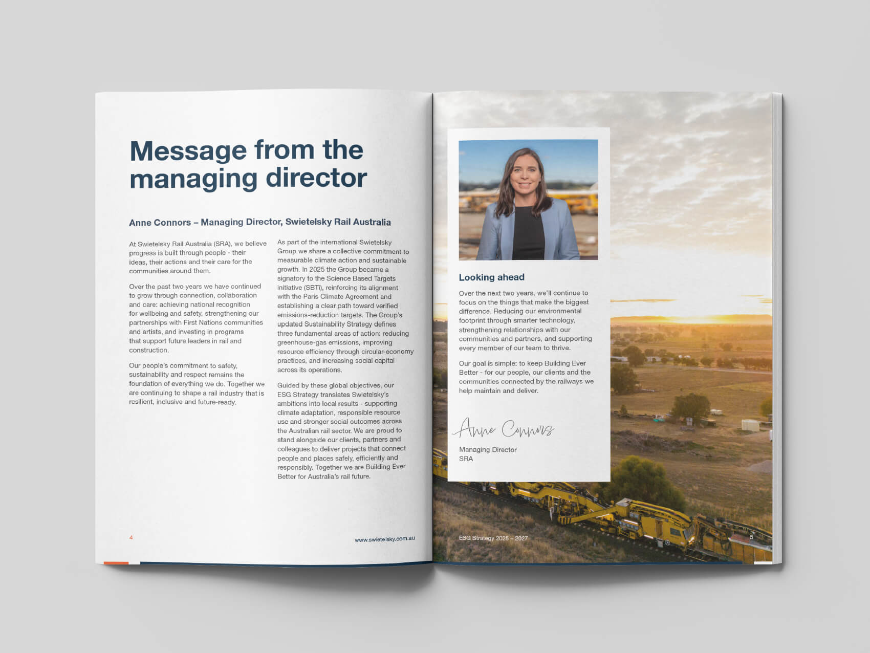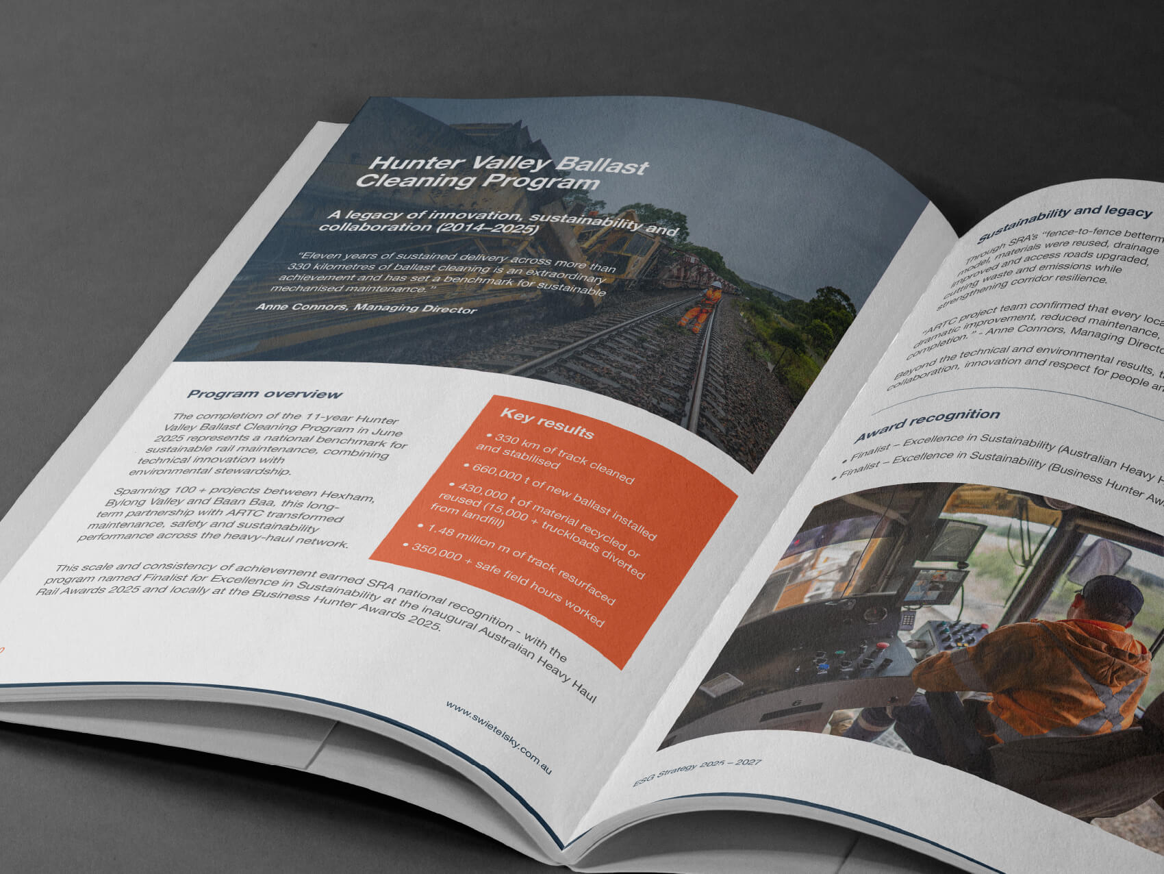 While at The Marketing GP, Sam worked with Swietelsky Rail Australia to design and produce their ESG Strategy document, translating complex environmental, social and governance initiatives into a clear, structured and engaging publication.