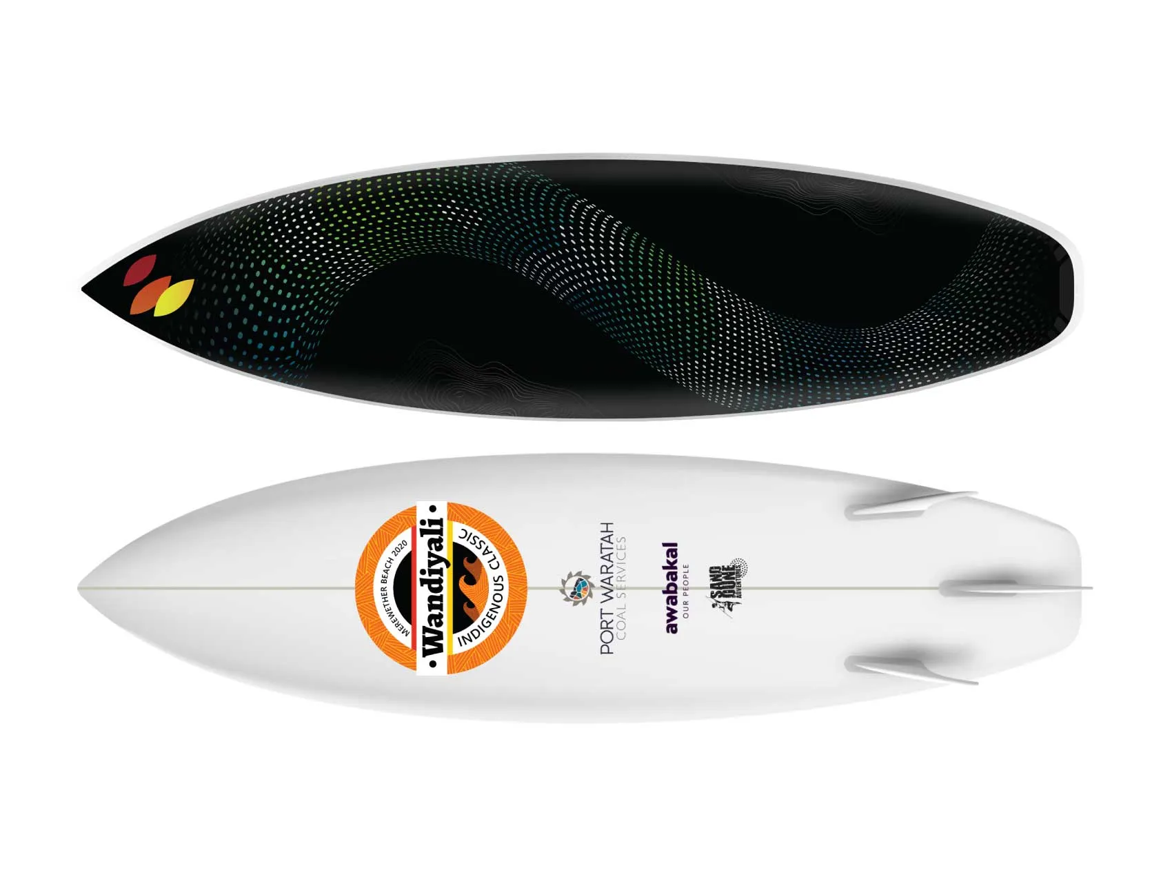Aboriginal surfers from across the country make their way to Newcastle to compete each year.Over the last three years, Sam worked closely with the event's owners to design the event's branding, clothing range, and promotional materials. Sam was also fortunate enough to collaborate with Aboriginal elders to create unique surfboard designs, each to be awarded to the winners of the event.